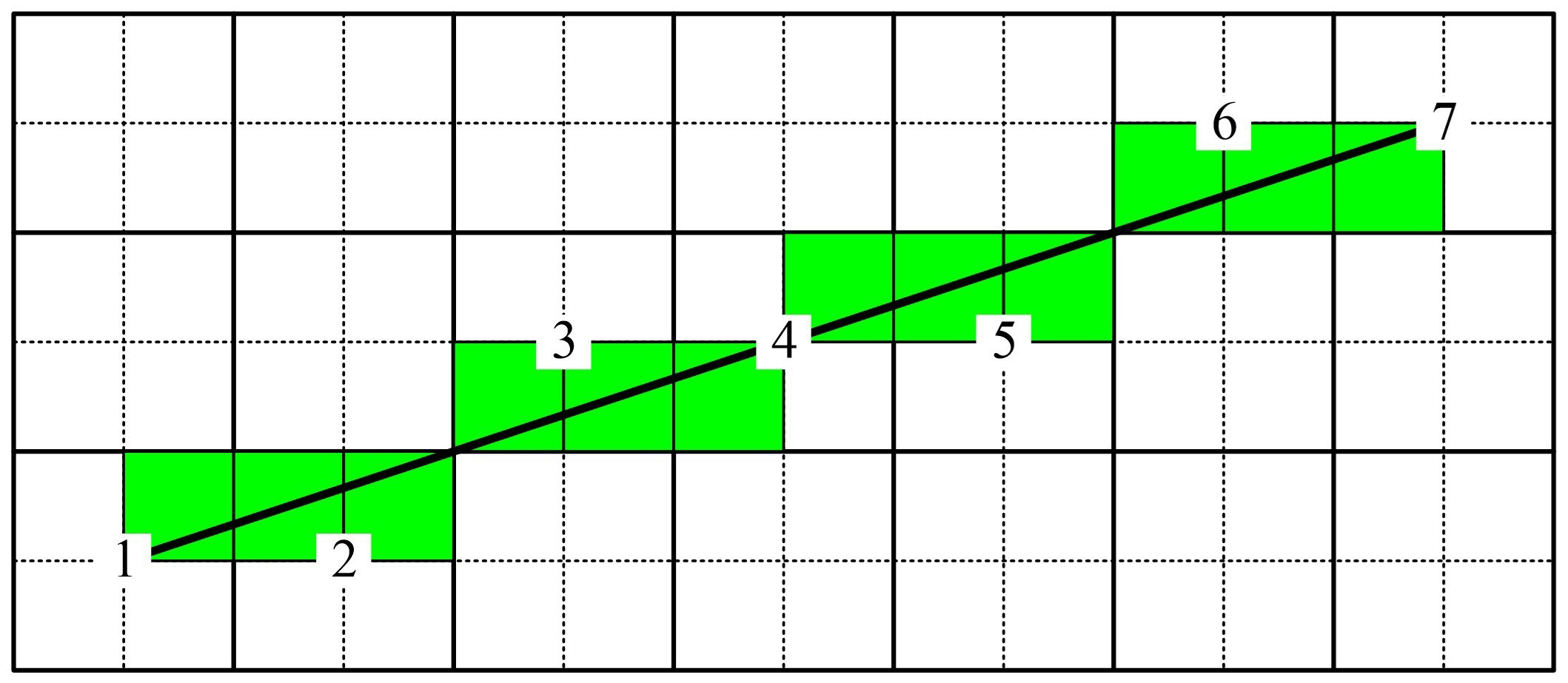 - 产生原因:数学意义上的图形是由无线多个连续的、面积为零的点构成;但在光栅显示器上,用有限多个离散的,具有一定面积的像素来近似地表示他们